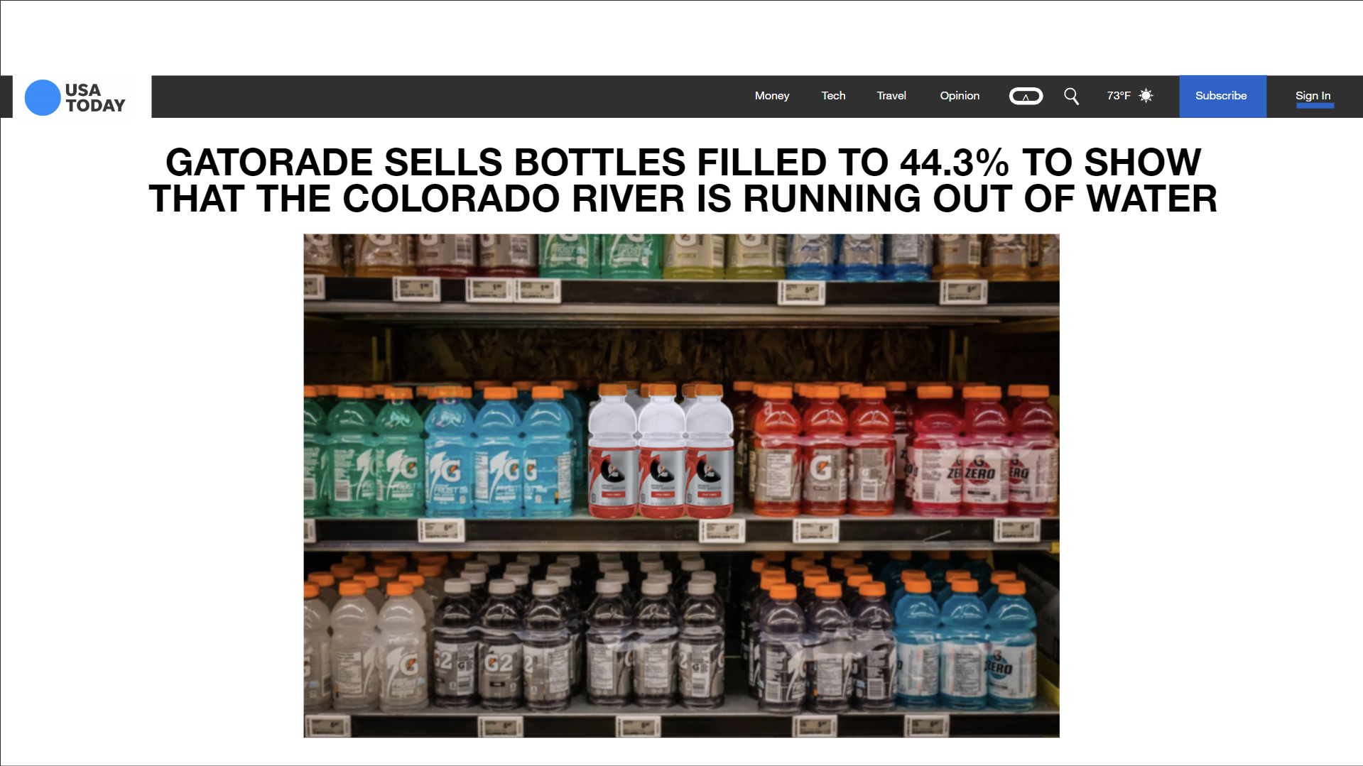 "This bottle of Gatorade is only 44.3% filled, the same percentage as the Colorado River.